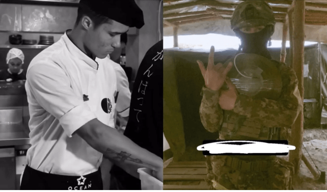 Uma das fotos, inclusive, mostra o sushiman vestido com fardamento de combate, seguido por um vídeo dele em atuação como sushiman.