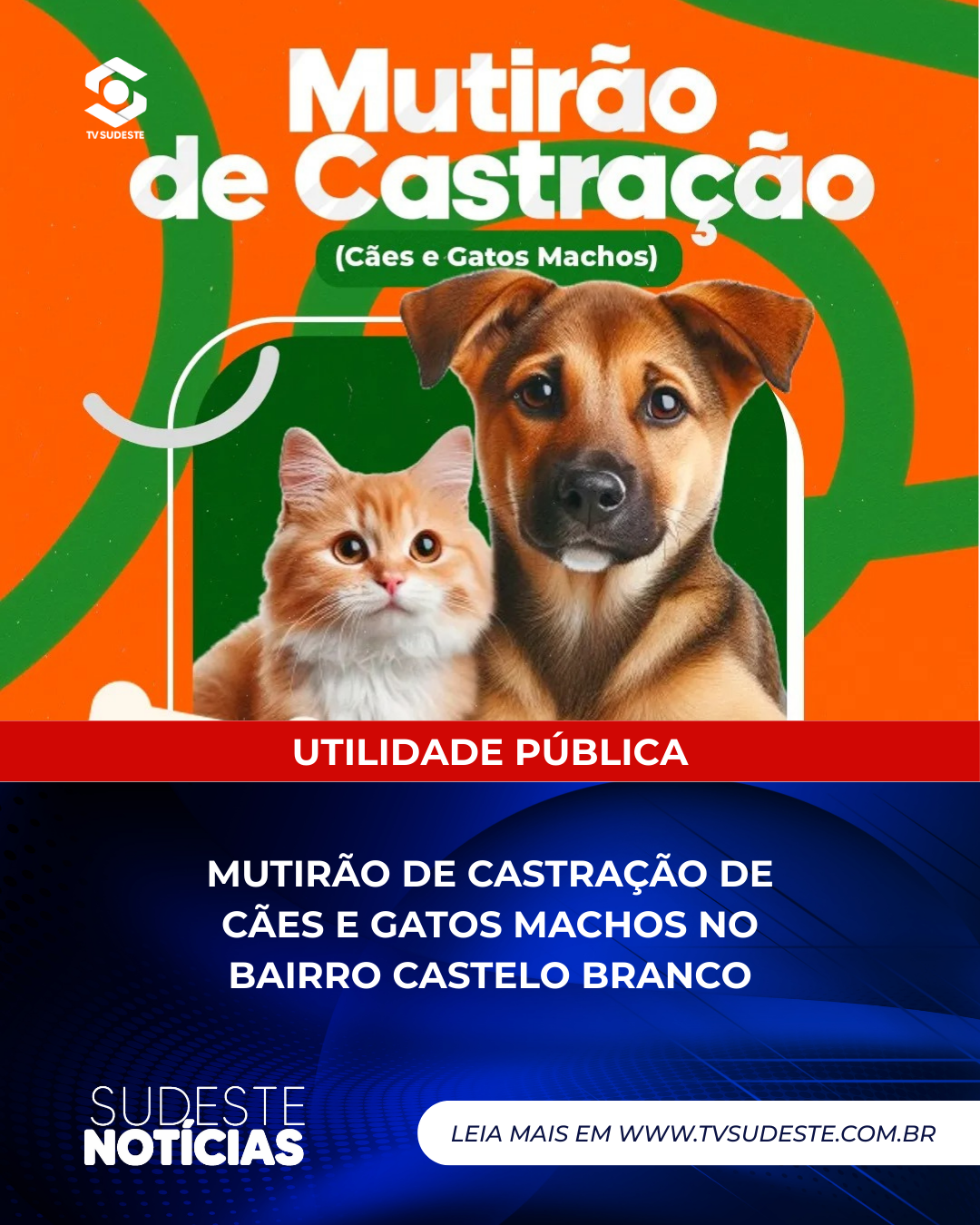 A ASPAC – Associação Protetora dos Animais de Catalão, responsável pela gestão do Centro de Castração do município, promoverá nos dias 29 e 30 de janeiro um grande mutirão de castração por meio do castramóvel, que estará estacionado em frente à UBS Maria Carolina, no bairro Castelo Branco. A ação será destinada exclusivamente à castração de cães e gatos machos.