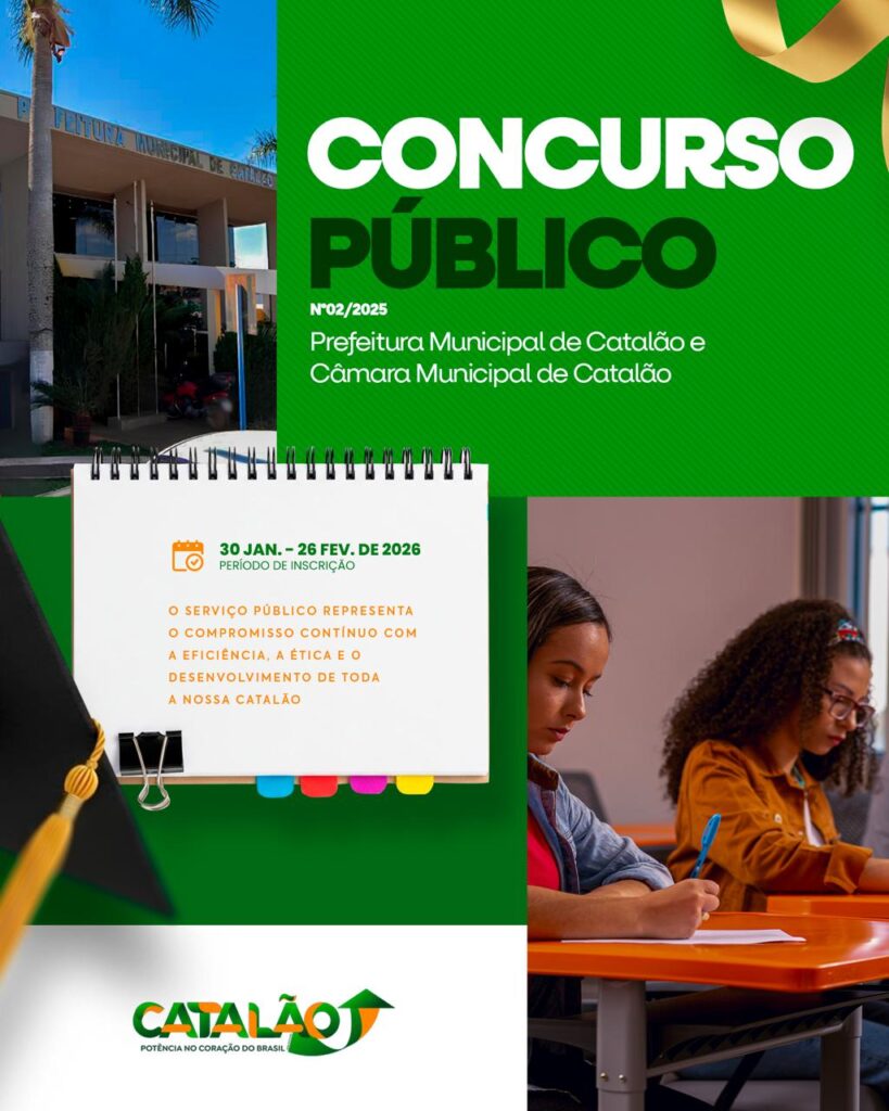Encerrando 2025, abre-se uma importante chance de emprego público para 2026 em Catalão. A Prefeitura Municipal, em conjunto com a Câmara de Vereadores, anunciou oficialmente a abertura do Concurso Público nº 02/2025, que tem como objetivo o preenchimento de cargos efetivos nos dois poderes, fortalecendo a gestão pública do município.
