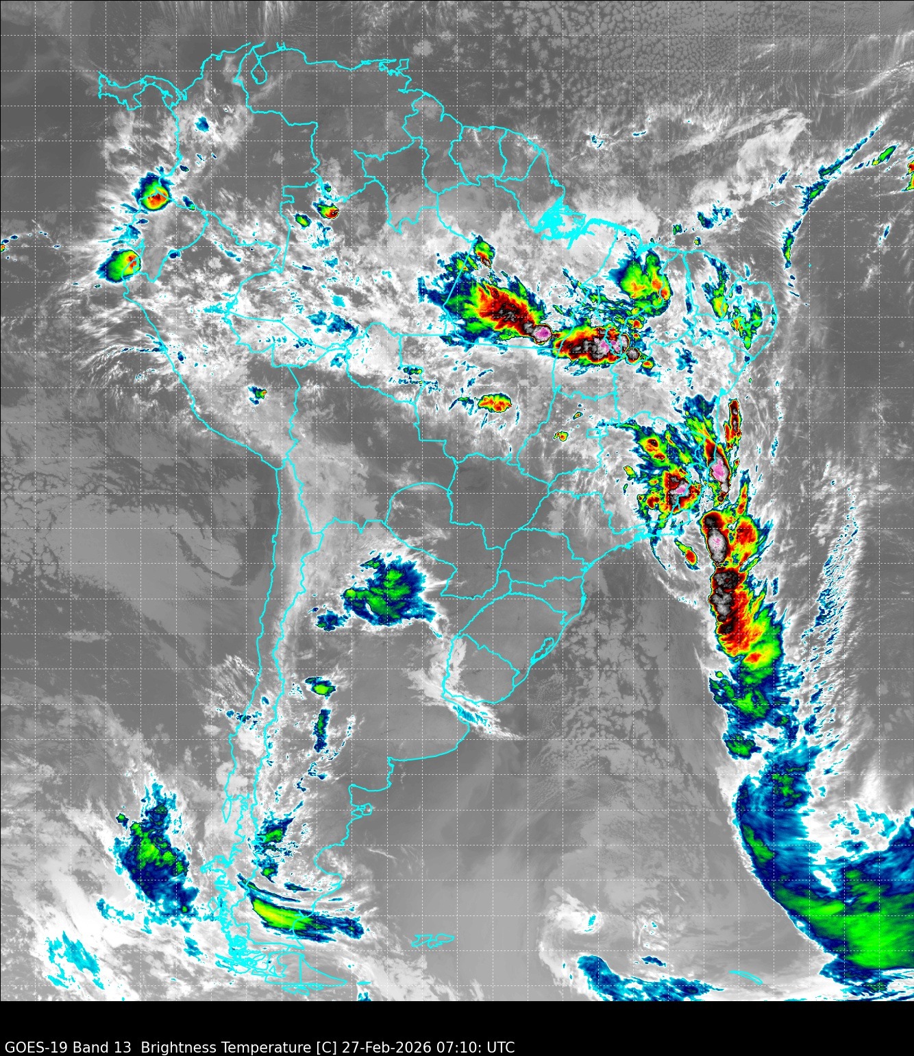 A manhã desta quinta-feira (27) começa com forte instabilidade termodinâmica em grande parte do Brasil. O principal destaque é a atuação da Zona de Convergência do Atlântico Sul (ZCAS), que organiza um corredor de umidade e deve manter o tempo instável nos próximos dias.